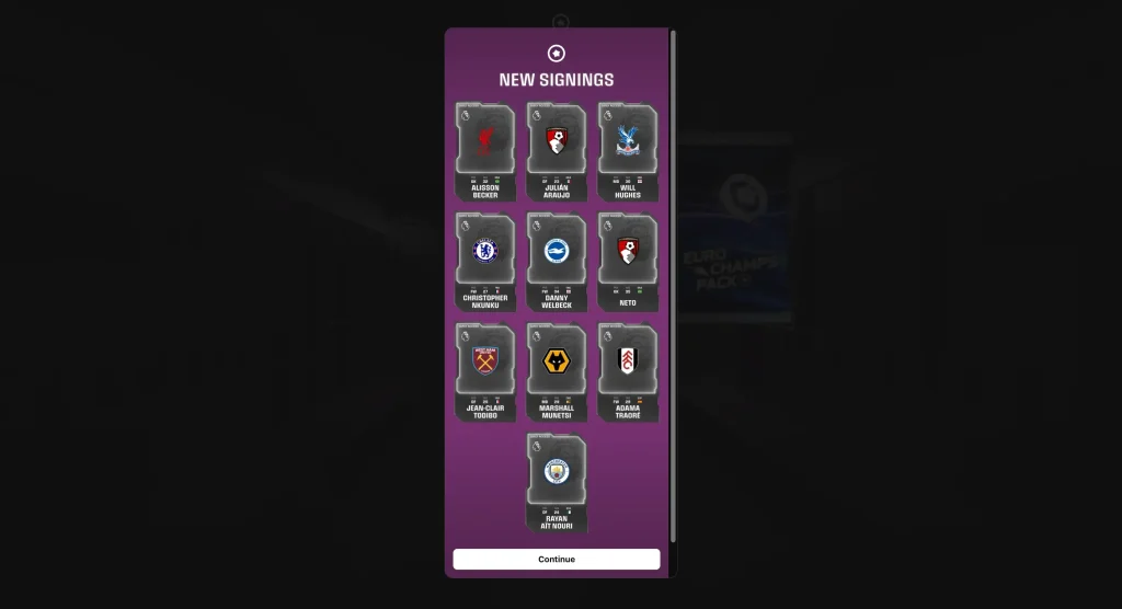 3: Seu pacote será aberto, revelando 10 jogadores, a partir dos quais você deverá montar seu primeiro time para a próxima GameWeek.
